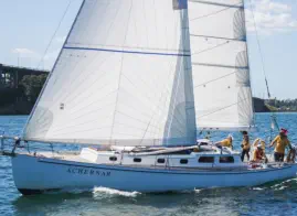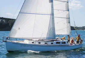 old sailing grounds in the Maurangi Harbour. She has a regular outing at the regatta acting as the Club Start/Finish Boat.